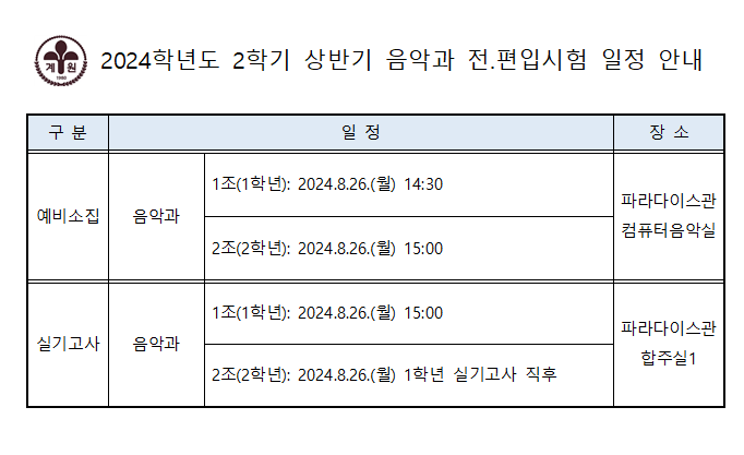 2024Çг⵵ 2Çб⠻ó¹Ý±â À½¾Ç°ú Àü.ÆíÀÔ½ÃÇè ÀÏÁ¤ °øÁö