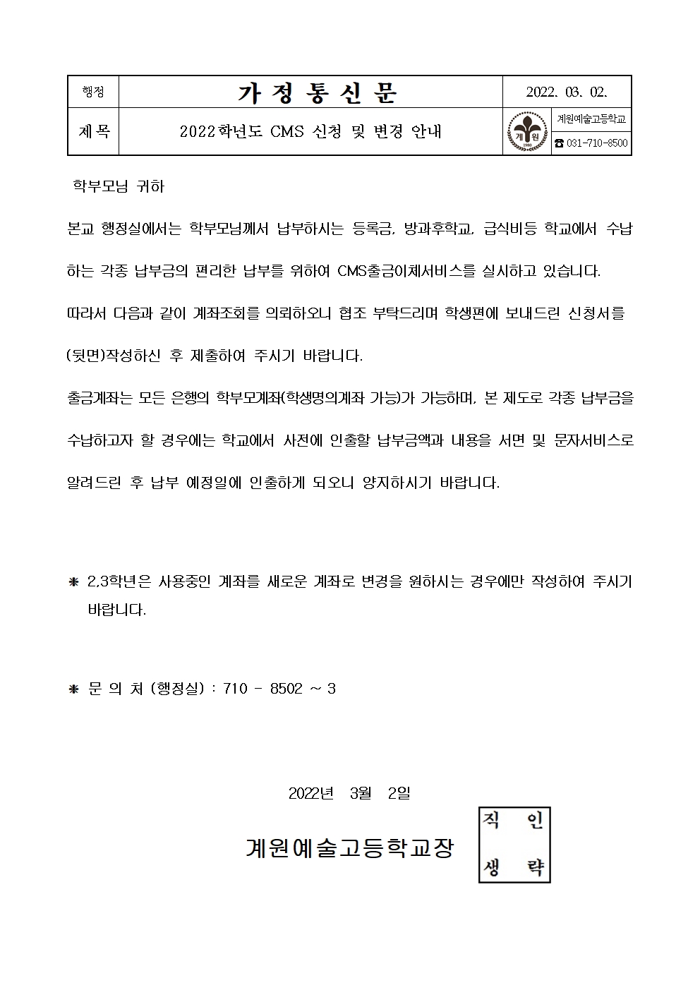 CMS °èÁ½Åû ¾È³» °¡Á¤Åë½Å¹® ÀÔ´Ï´Ù.