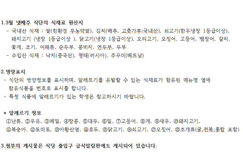 3¿ù ³Ý°ÁÖ ½Ä´ÜÀÇ ½ÄÀç·á ¿ø»êÁö ¹× ¿µ¾çÇ¥½Ã, ¾Ë·¹¸£±âÇ¥½Ã